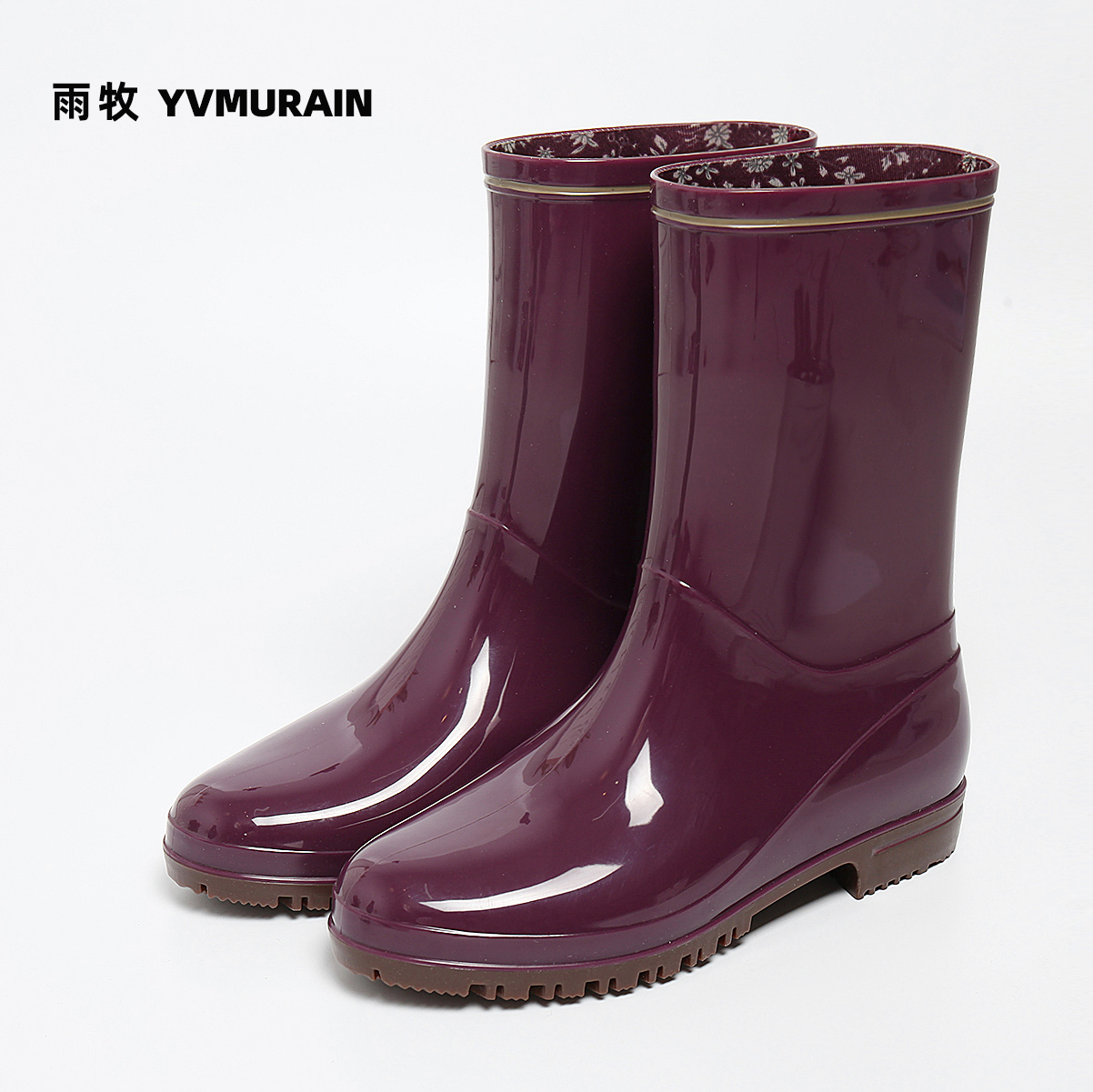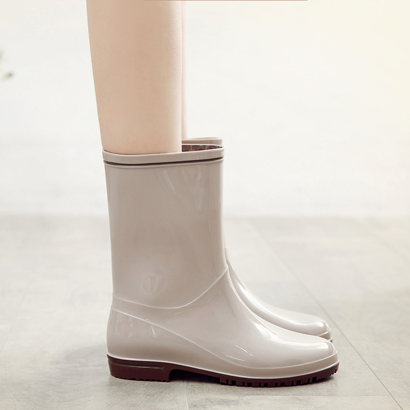 日系防水胶鞋 外穿水鞋 雨靴 女中筒防滑耐磨时尚 雨牧高分子材质雨鞋