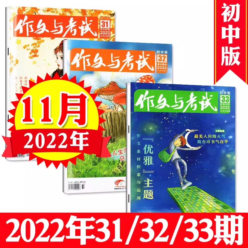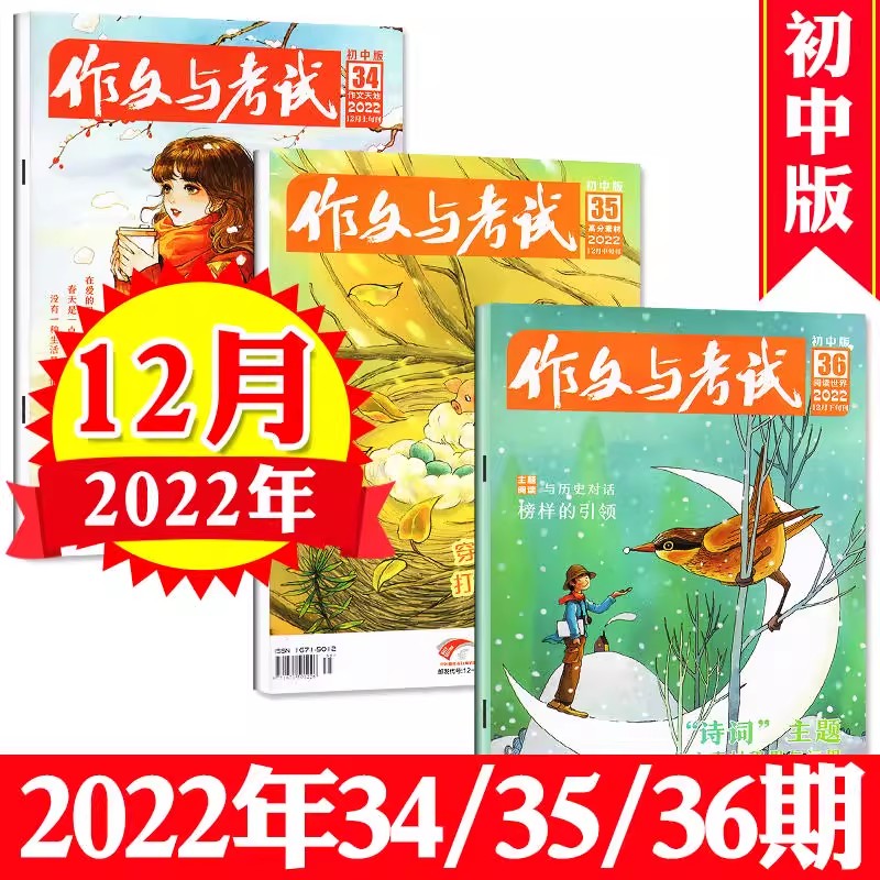 2022年全年月份可选 2022年1 12月 中考作文素材类课外阅读过期刊非2024年 作文与考试杂志初中版 2025年