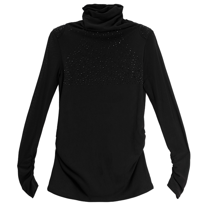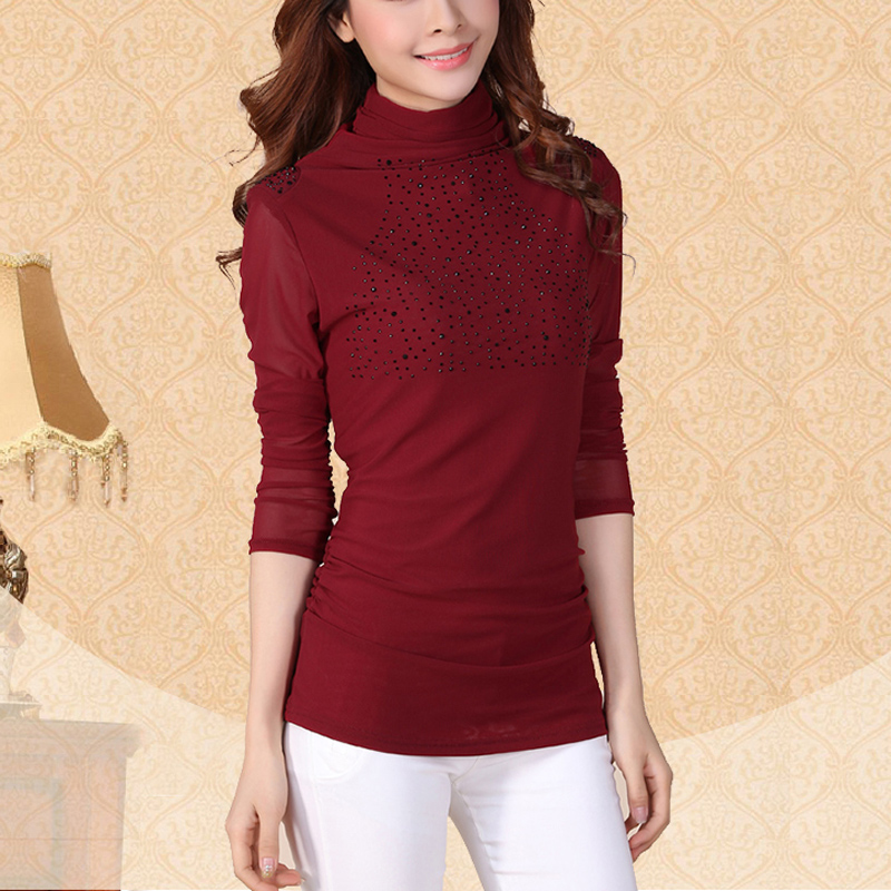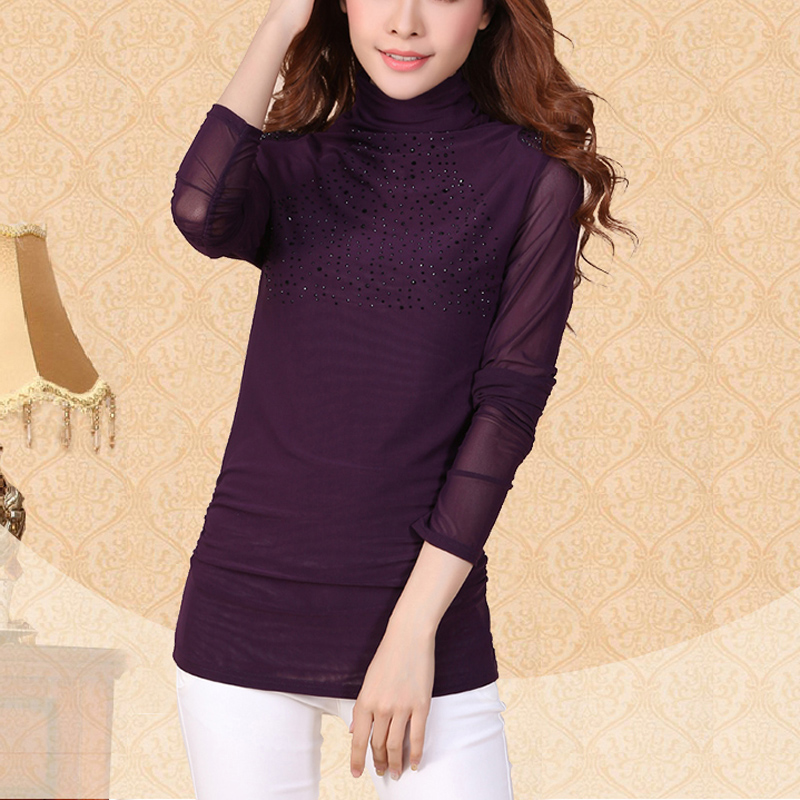 洋气妈妈双层网纱打底衫 加绒上衣遮屁股高领t恤 女高端春秋中长款