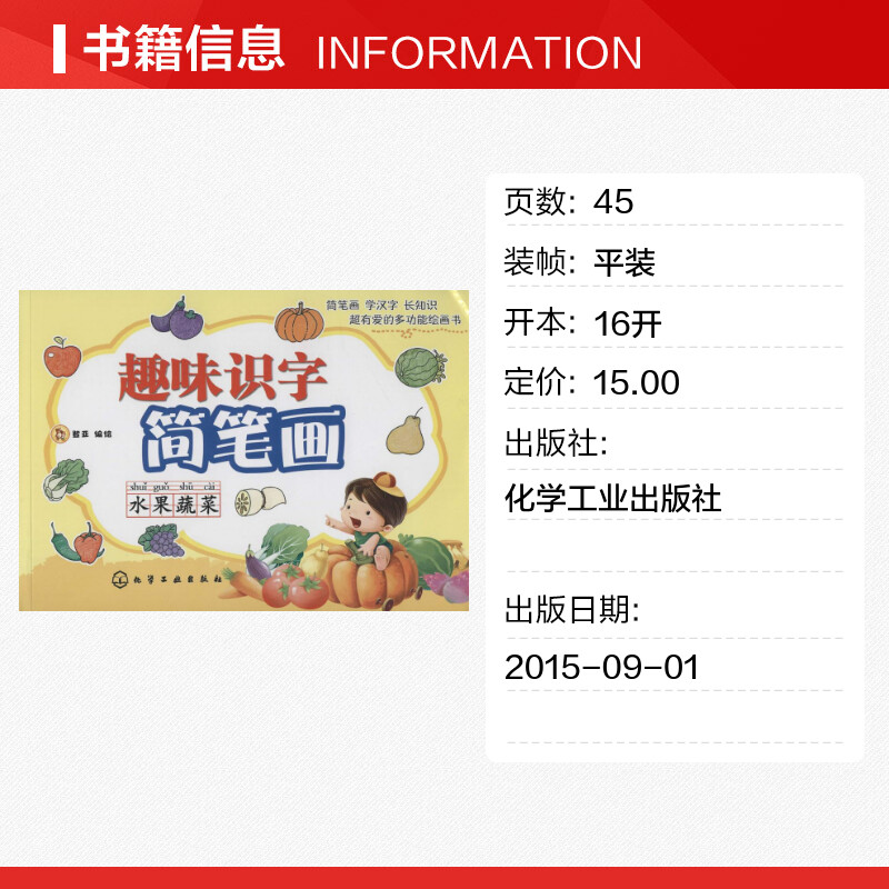 著作 科普百科少儿 新华书店正版 趣味识字简笔画水果蔬菜 化学工业出版 编绘 图书籍 社 登亚