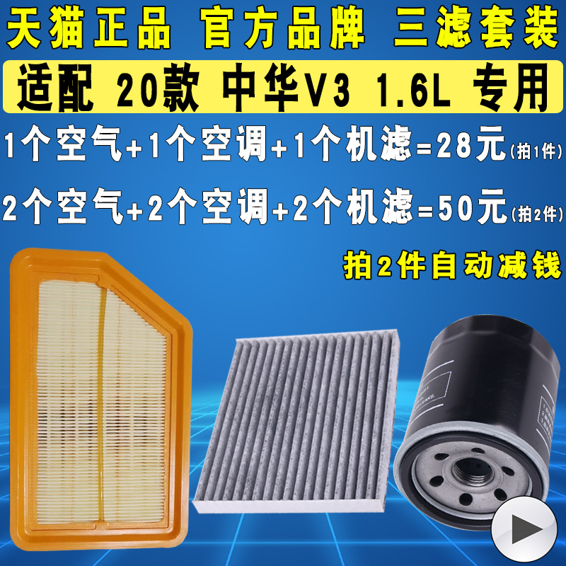 适配20款 升级1.6L 中华V3机油滤芯空气空调滤清器格三滤原厂原装