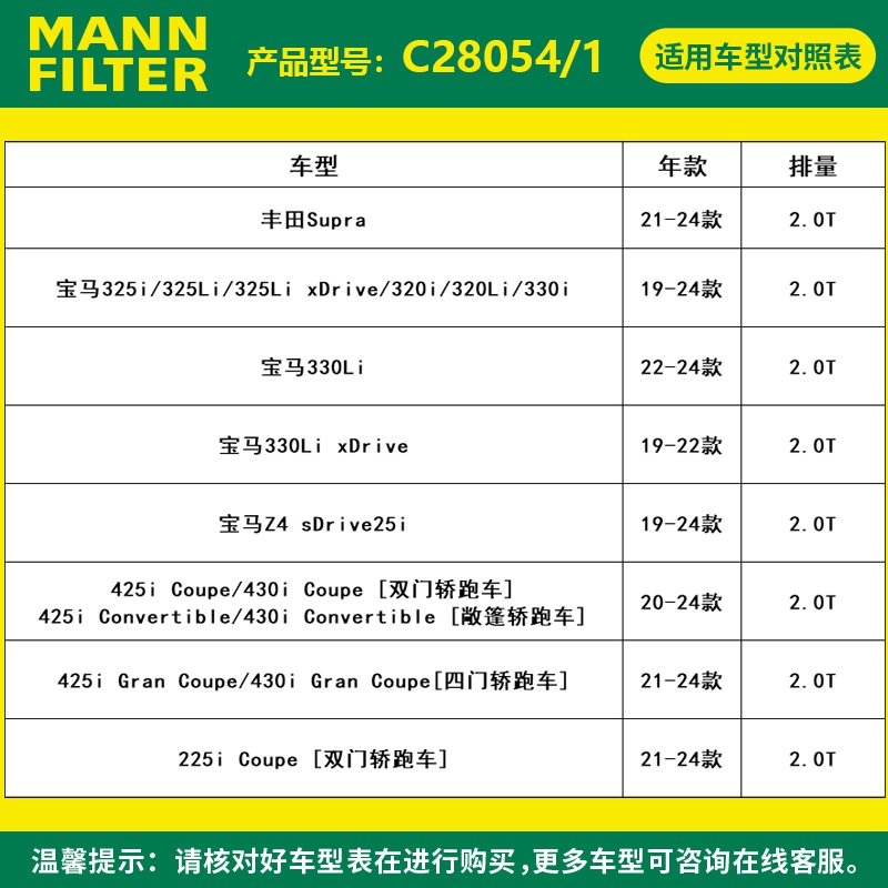 1空气滤芯格适用宝马3系 320 4系 225i 330 曼牌滤清器C28054