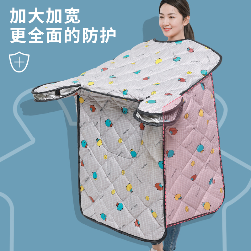 通用 电瓶摩托防风防水罩四季 电动车挡风被冬季 加绒加厚全包斗篷式