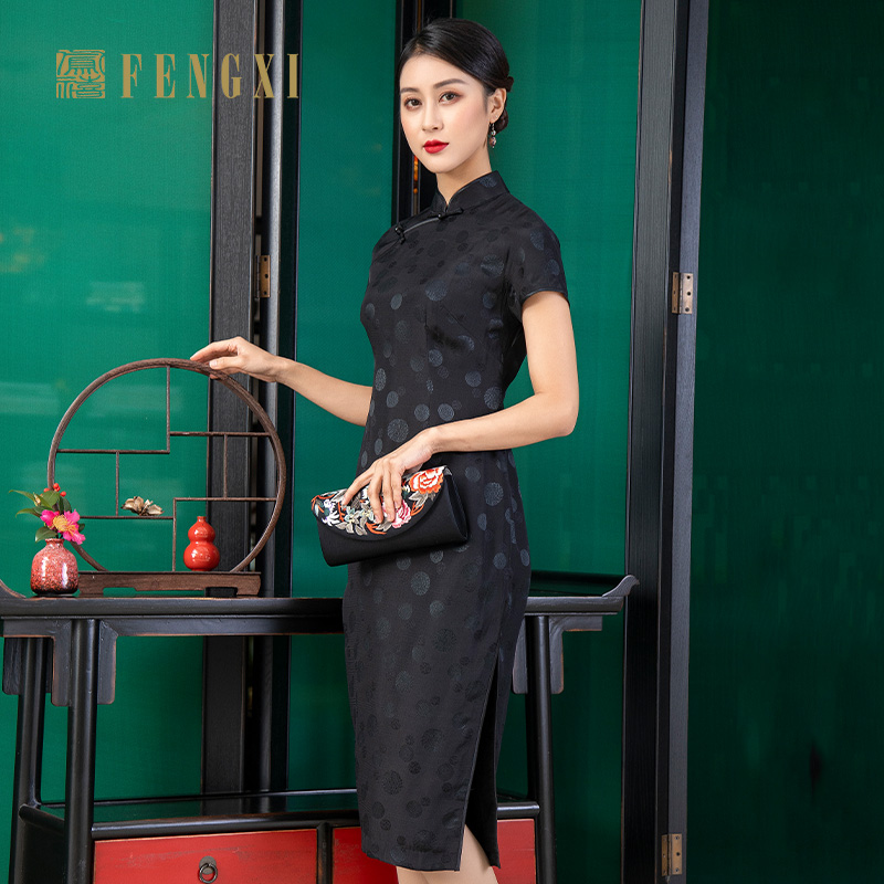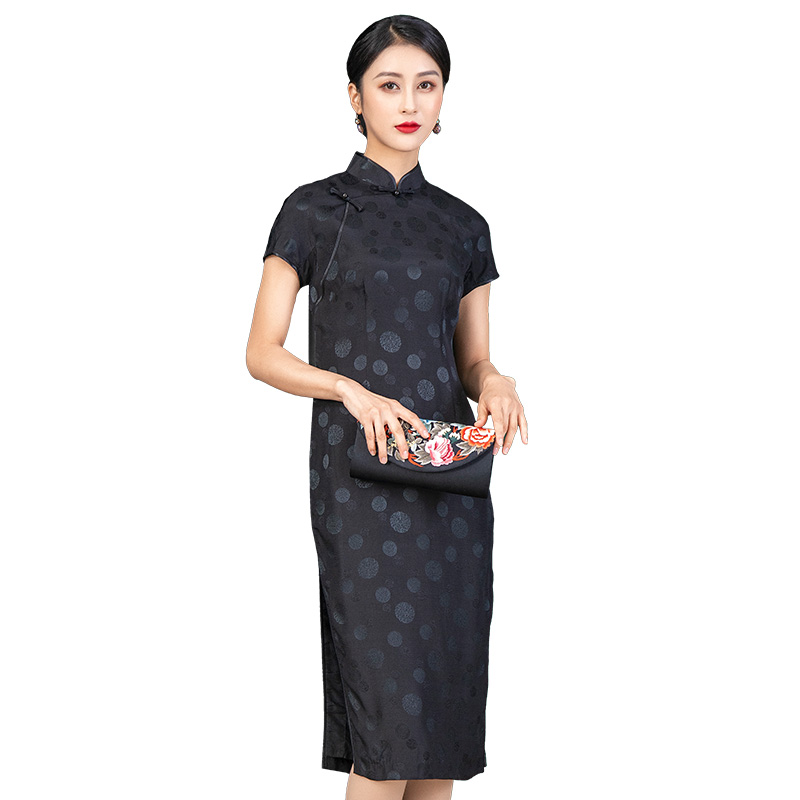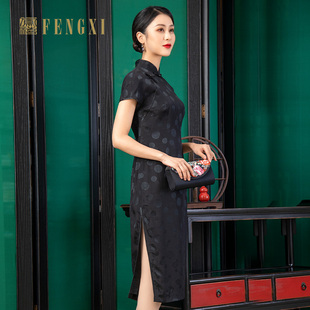 黑色刺绣旗袍2025春夏新款 走秀连衣裙 女复古民国风日常可穿新中式