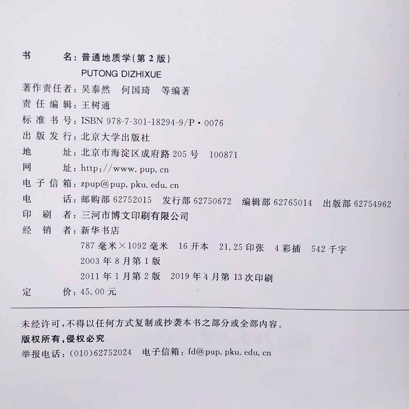 吴泰然 第二版 何国琦 北京大学出版 9787301182949 普通地质学 社 第2版