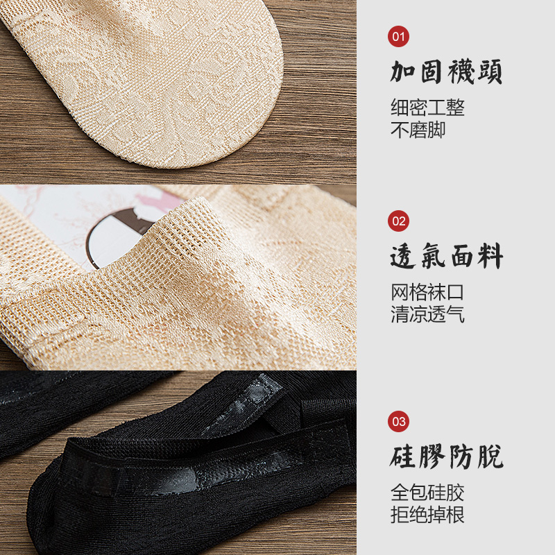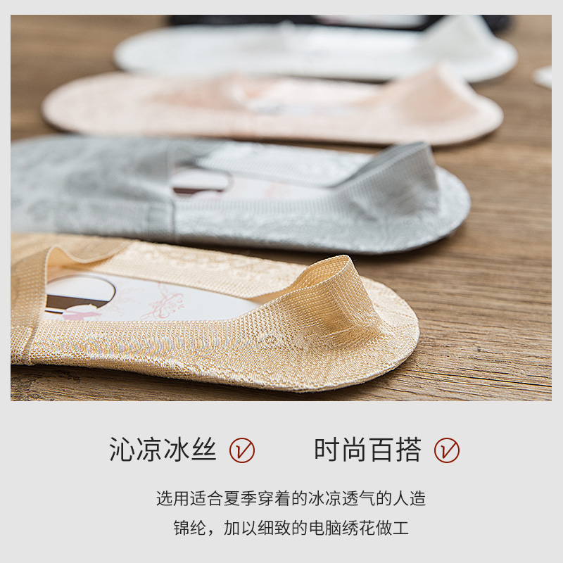 高跟鞋 袜子薄款 袜子 冰丝隐形袜棉制底防滑不掉跟浅口鞋 船袜女夏季
