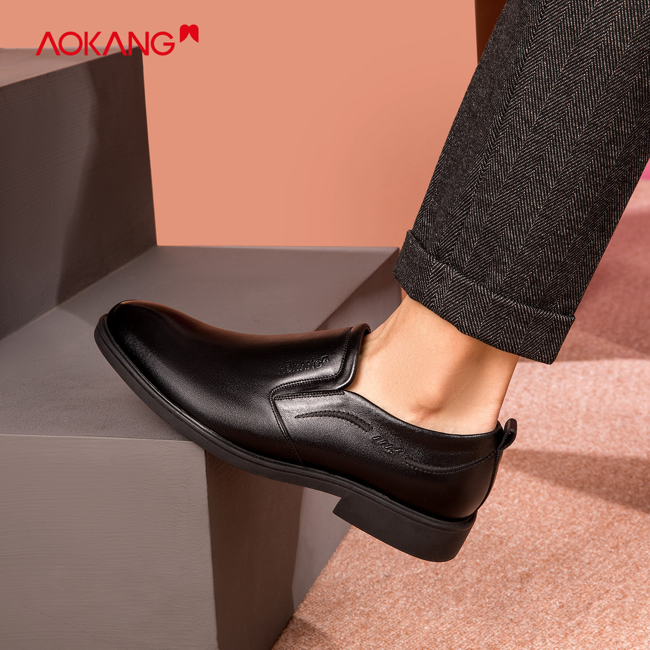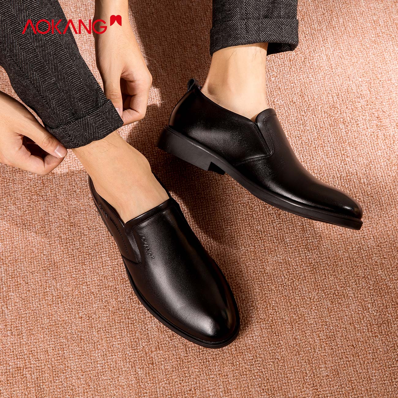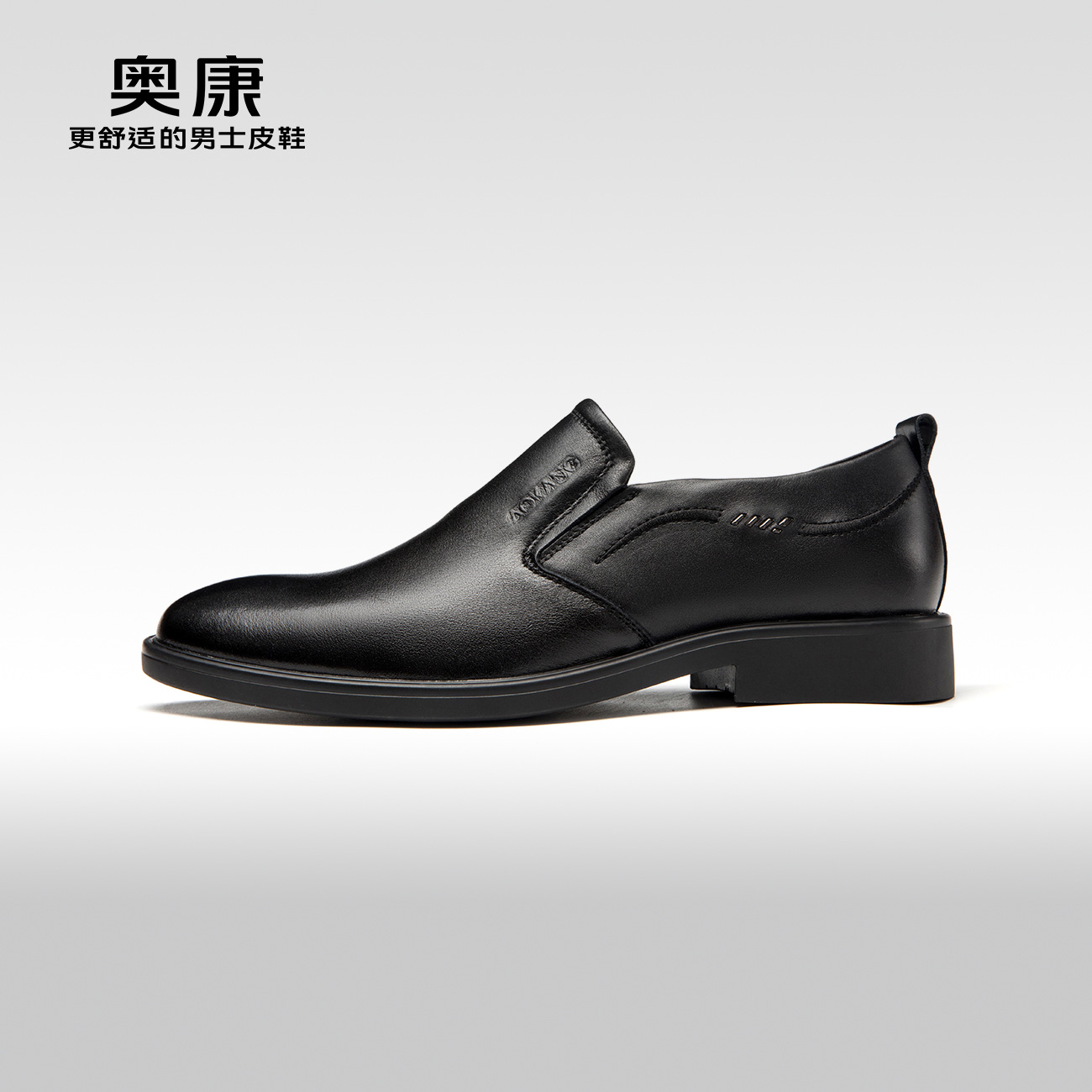 正装 牛皮圆头套脚男士 皮鞋 德比鞋 奥康男鞋 黑色通勤工作鞋 春秋款