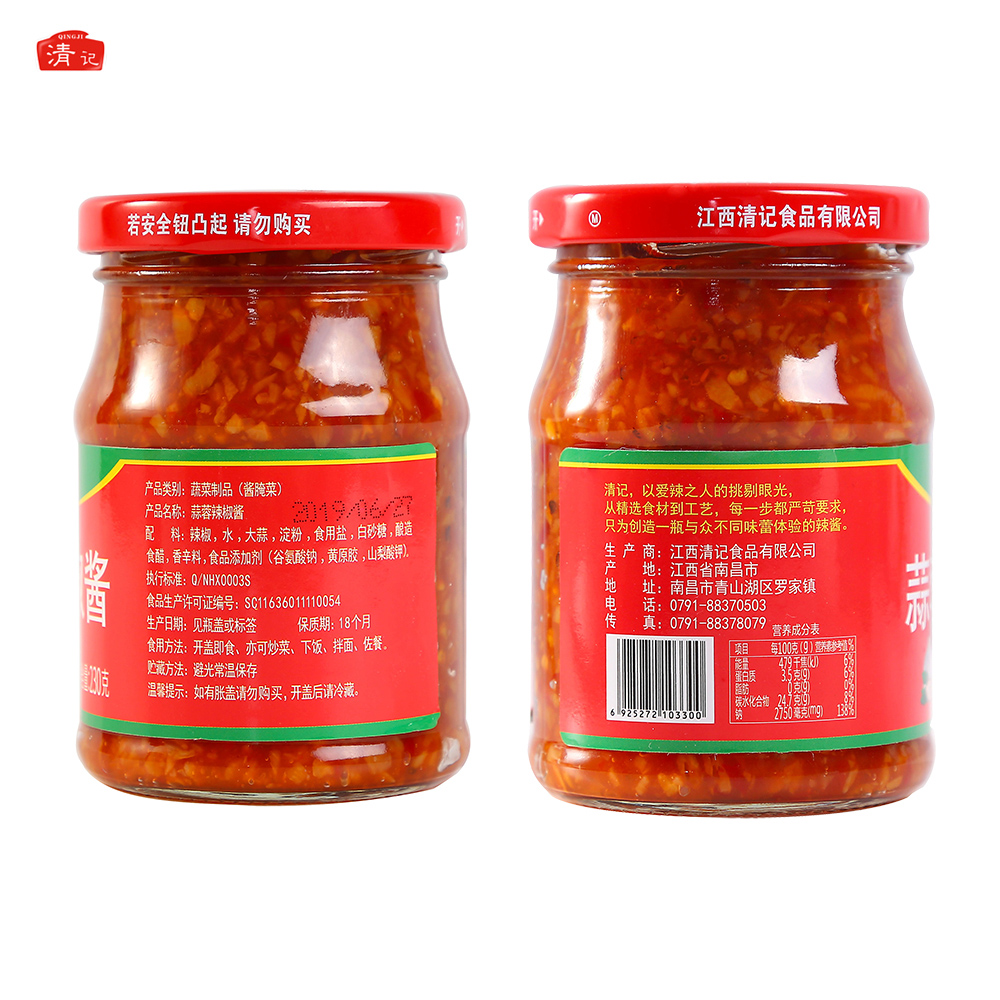 厨邦蒜蓉辣椒酱210g瓶装 拌面酱料调料调味品香辣黄豆酱下饭神器