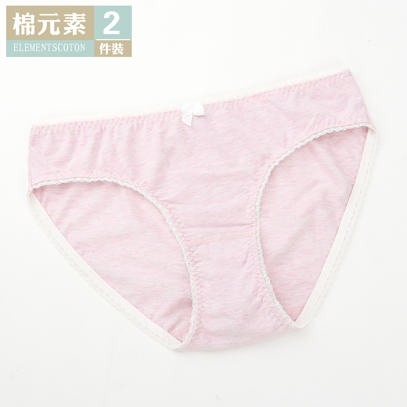 三角内裤 2条装 纯棉条纹中低腰简约舒适薄款 素女内裤 女LM571A 棉元