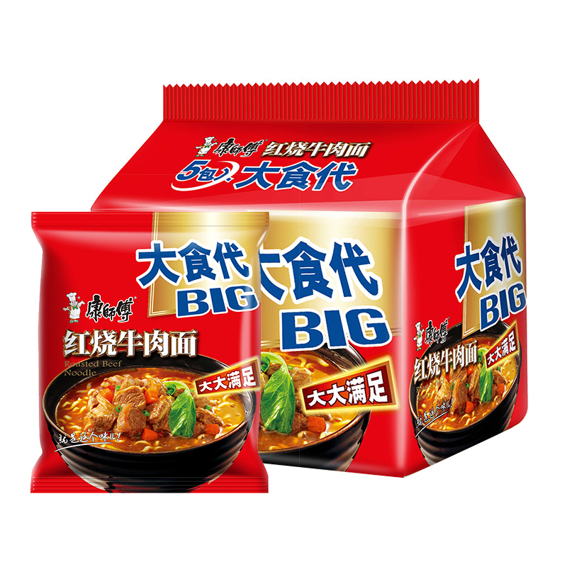 康师傅方便面大食代红烧牛肉味5袋装 big加量速食夜宵泡面大食袋