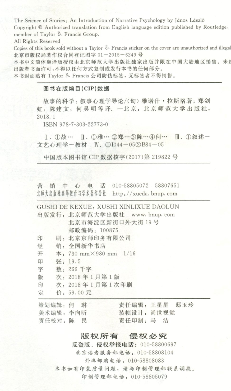 9787303227730 叙事心理学导论 北京师范大学出版 社 书籍 故事 正版 科学