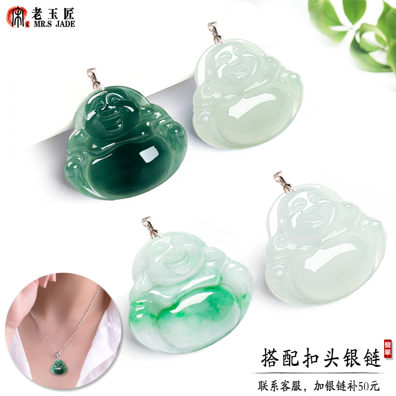 天然A货翡翠玉佛玉吊坠阳绿带翠弥勒佛玉挂件正品 玉石佛公玉项链