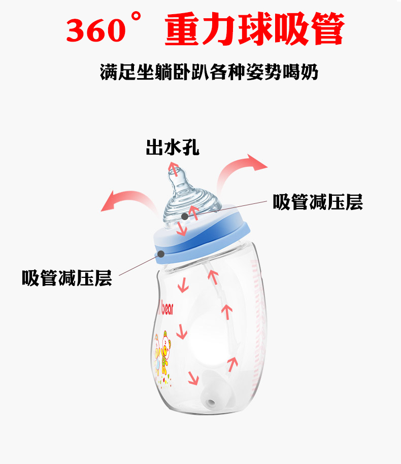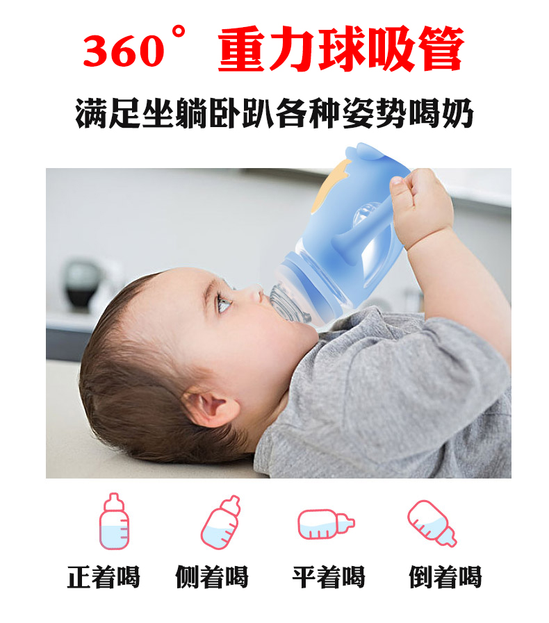 世喜断奶大奶瓶6个月一岁以上宝宝婴儿专用重力球吸管大容量奶瓶