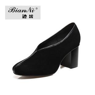 仙女风瓢鞋 秋季 浅口百搭中跟奶奶鞋 大码 真皮单鞋 女鞋 粗跟2025新款