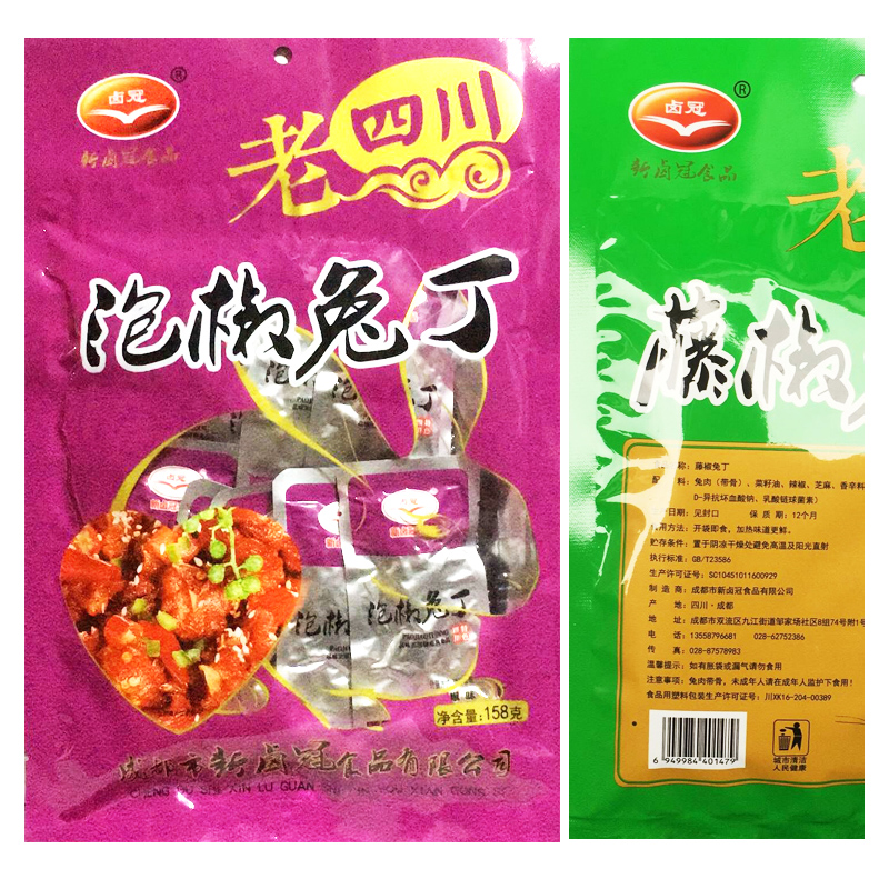 老成都卤冠麻辣兔丁158g 带骨冷吃兔 3袋烧烤酱香味兔肉零食小包装