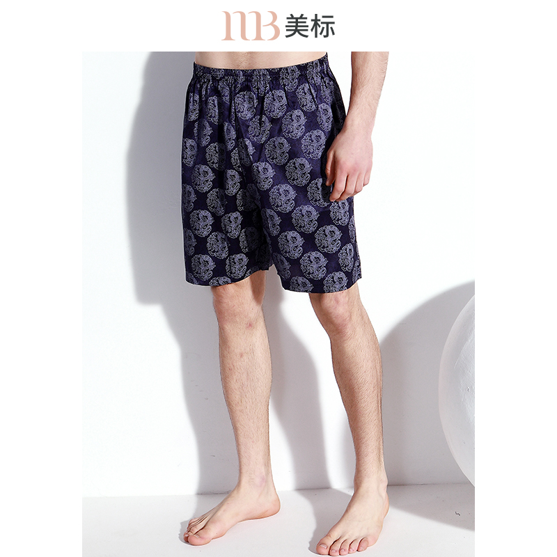 男士 丝绸睡裤 短裤 中裤 真丝沙滩桑蚕丝休闲平角舒适家居裤 美标夏季