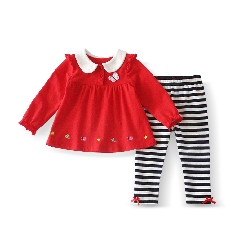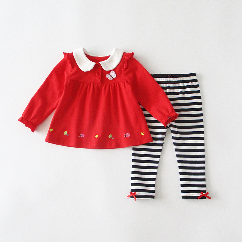 薄款 1一2岁公主衣服红色幼儿春秋季 秋装 小女童宝宝连衣裙两件套装