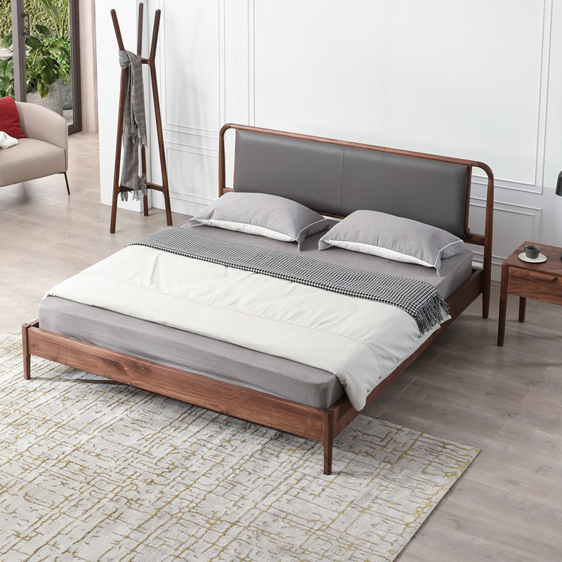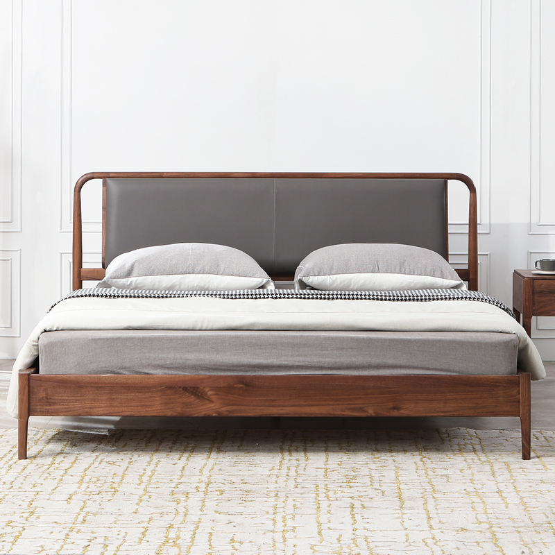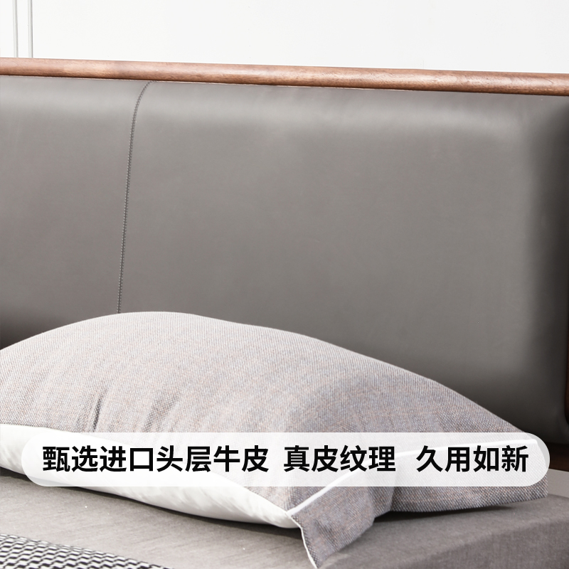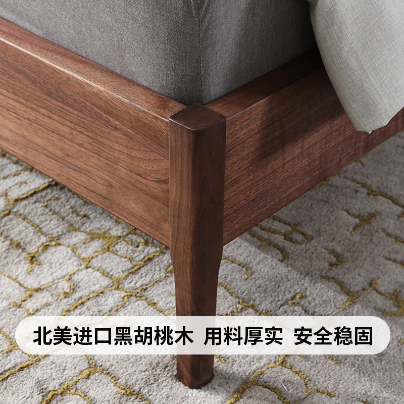 北美黑胡桃木床北欧实木床1.8米双人床1.5软包床简约婚床主卧大床