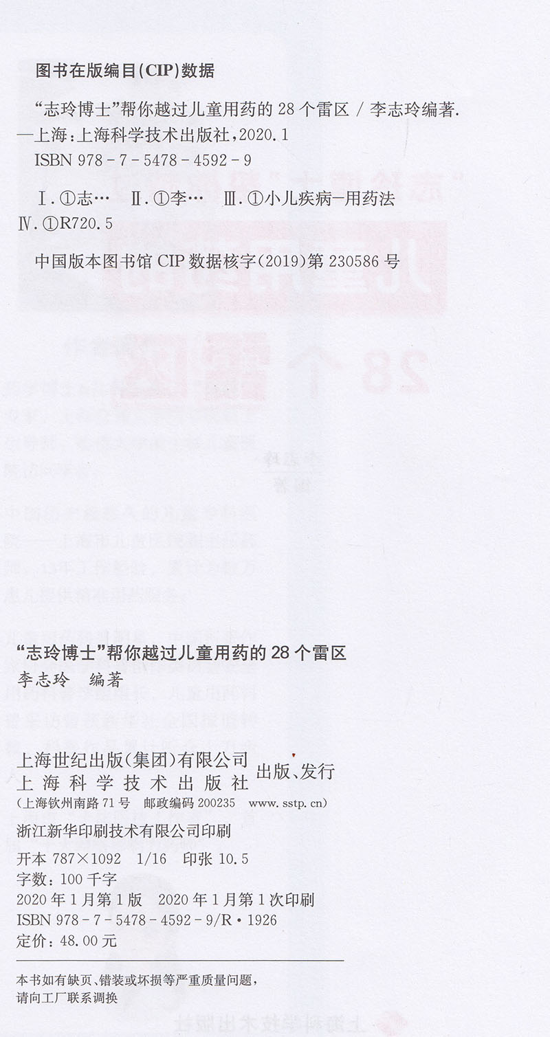 健康卫士医学保健医学科普儿童用药知识上海科学技术出版 随身药师孩子 社李志玲 28个雷区宝贝 现货志玲博士帮你越过儿童用药