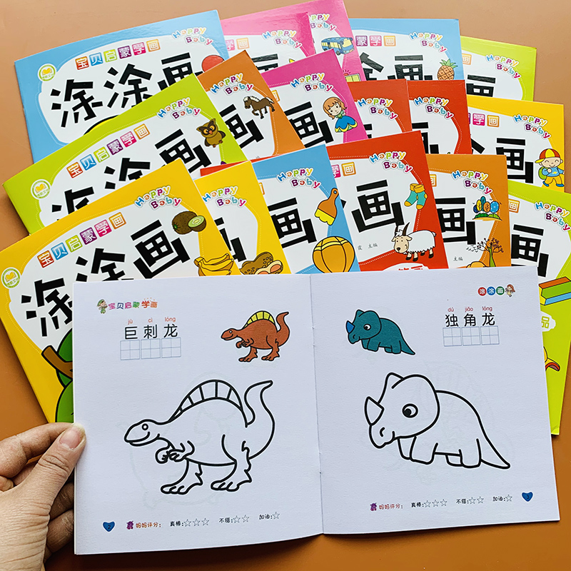6岁幼儿园小班中班大班绘画书填色本植物动物水果蔬菜交通工具彩笔涂色男孩女孩 18本儿童画画本涂色绘本2岁宝宝涂鸦图画3 套装