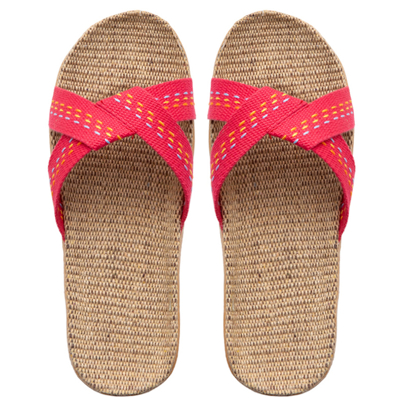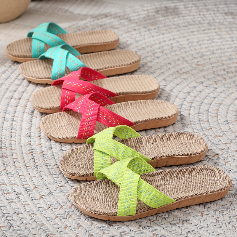 男室内露趾 舒适家居家防滑透气软底亚麻凉拖鞋 家用拖鞋 夏天女韩版