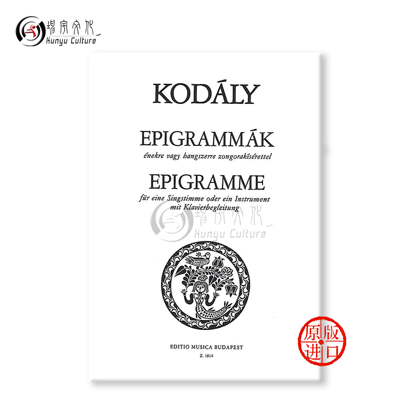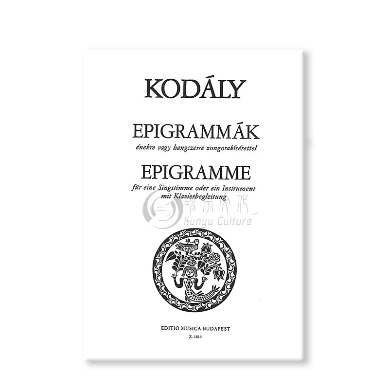 乐谱书 Epigrams 声乐和钢琴 原版 and Z1814 柯达伊警句 instrument Kodaly 布达佩斯 voice for Zoltan piano