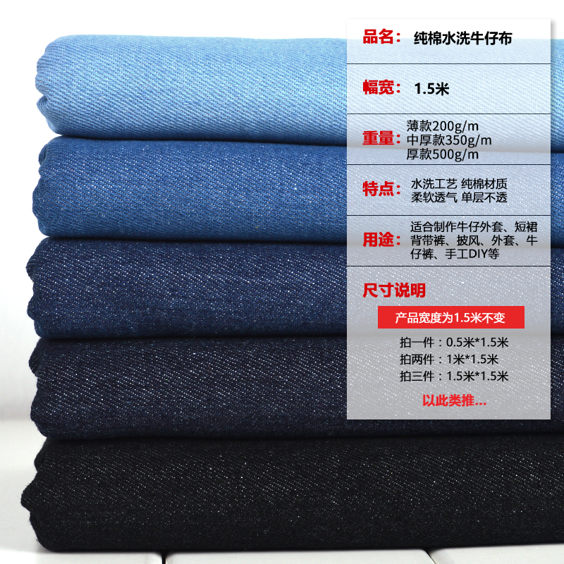 衬衫 面料水洗棉布春夏纯色薄款 裙子清仓处理 牛仔布料服装 纯棉厚款