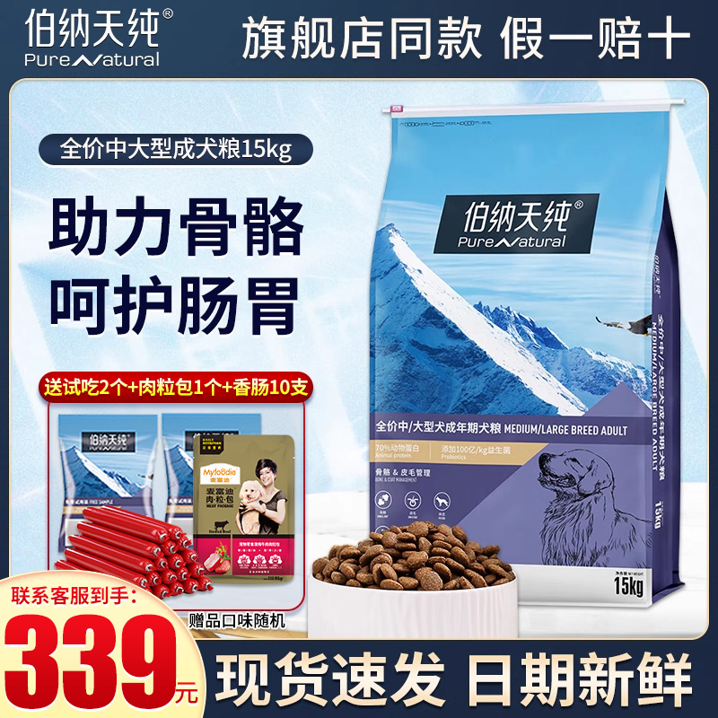 伯纳天纯中大型犬成犬狗粮15kg萨摩金毛犬主粮增免疫低敏天然狗粮
