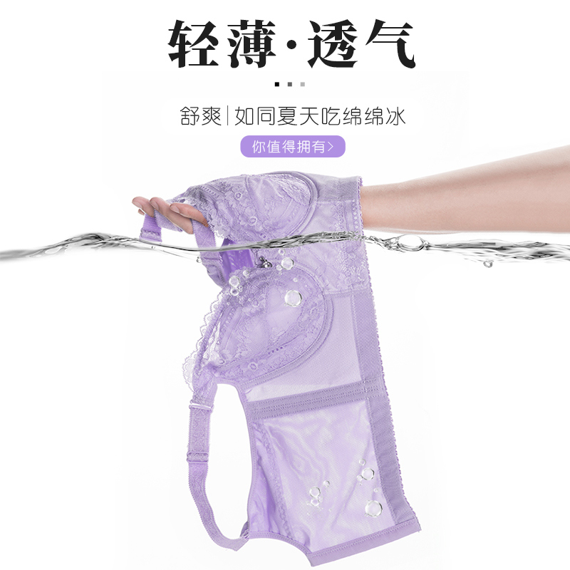 内衣缎面聚拢性感无钢圈文胸罩套装 虞书欣同款 ubras王妃蕾丝法式