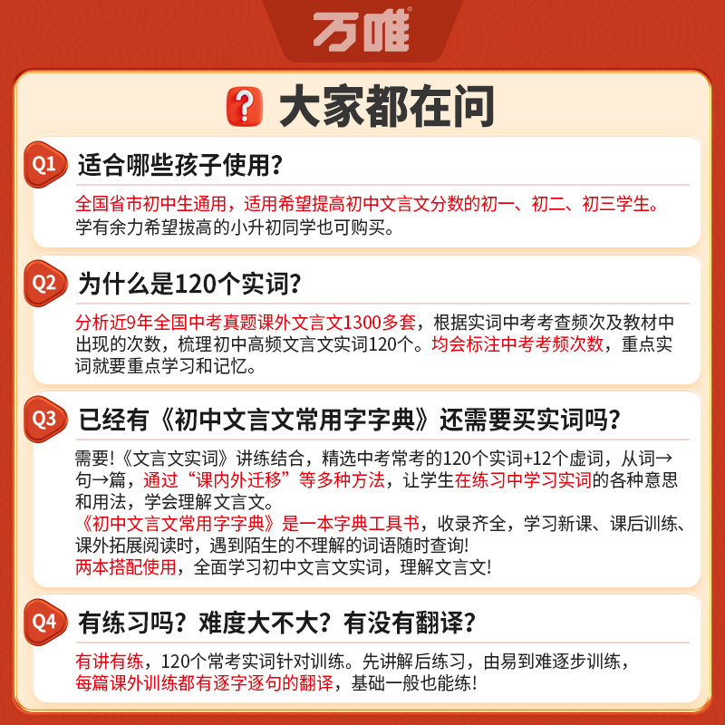 万唯中考初中文言文实词虚词专项训练阅读理解全解七八九年级初一初二初三总复习教辅资料书万维教育语文古代汉语常用字字典词典