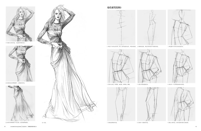 画人体动态参考图典 绘制技法z 服装 图 式 手绘教程书籍效果图手稿款 速写技法 表现技法 设计图人体动态与着装 完全绘本 3册