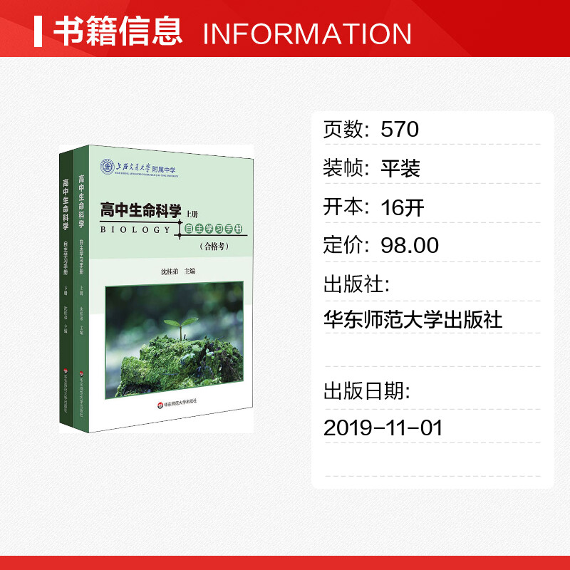 编 中学教辅文教 新华书店正版 高中生命科学自主学习手册 华东师范大学出版 沈桂弟 图书籍 社 2册