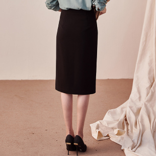 罗衣黑色知性包臀高腰半身裙女2025秋面试可穿修身 通勤裙子01645