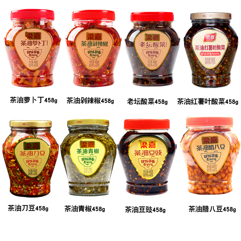 湖南特产梁嘉茶油剁辣椒红薯叶酸菜青椒萝卜丁黑豆豉刀豆剁椒