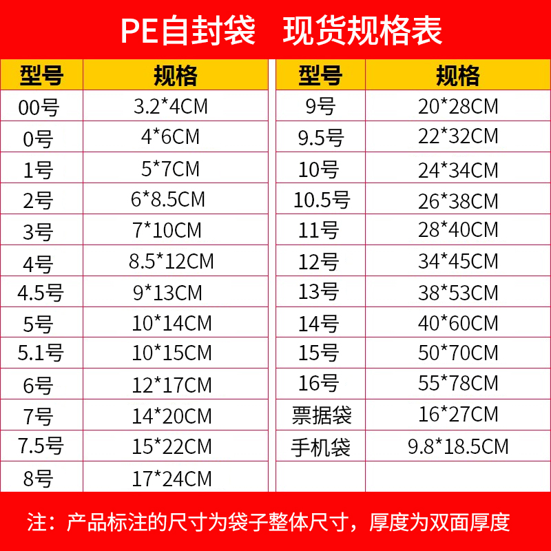 加厚自封袋小号塑封口袋子透明密封袋PE塑料包装 袋食品大号保鲜袋