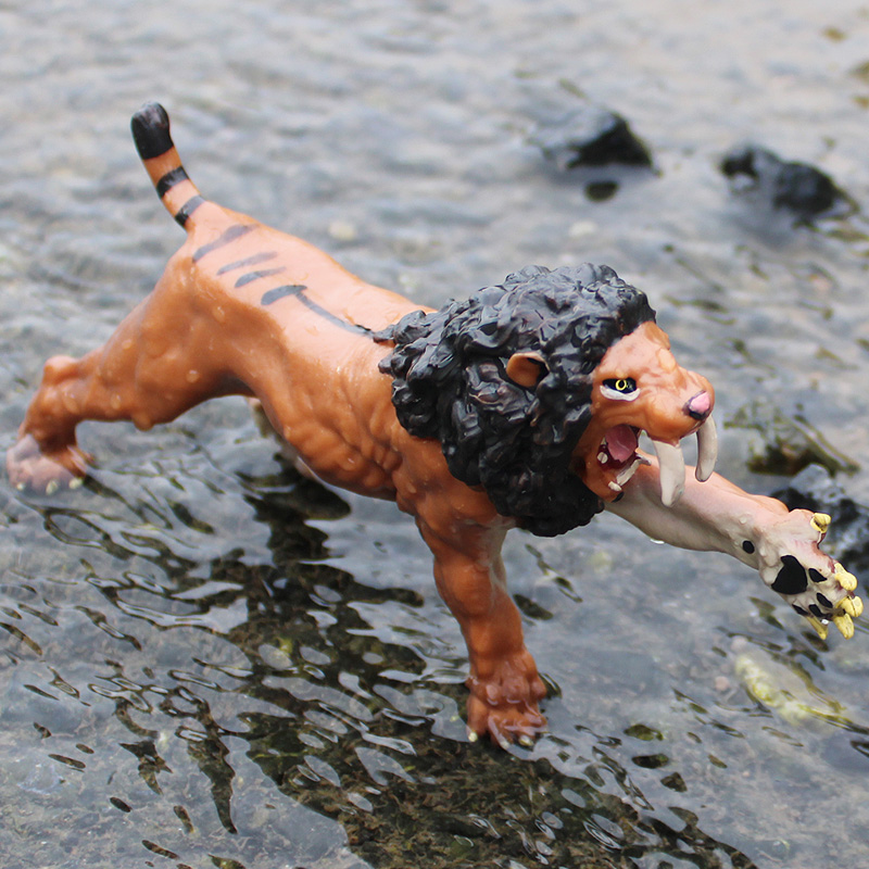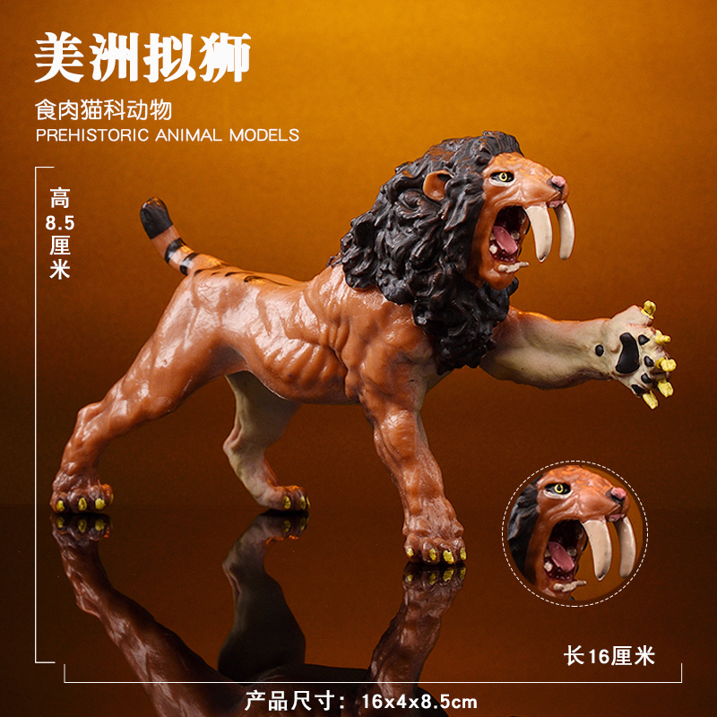 林畅美洲拟狮剑齿狮子老虎儿童玩具仿真动物模型史前生物远古巨兽