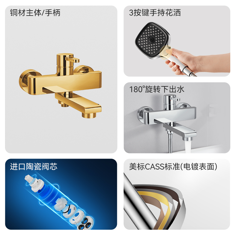 精铜淋浴龙头混水阀花洒沐浴套装 浴室浴缸混合开关三联冷热水龙头