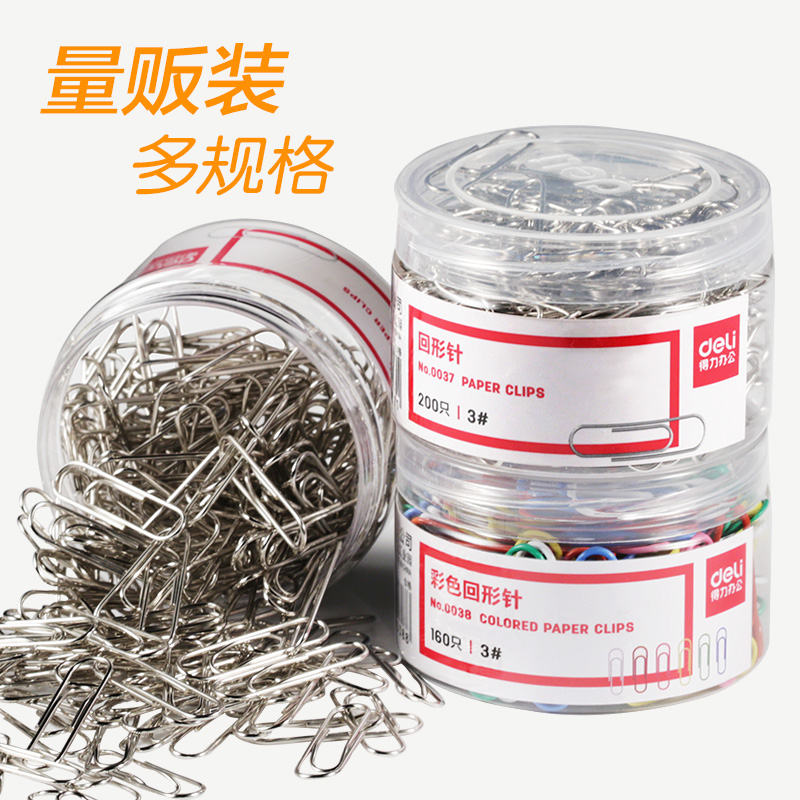 得力回形针别针曲别针办公用品固定衣服彩色回形针书签创意可爱文具大号回型针1000枚回行针夹子回旋针 包邮