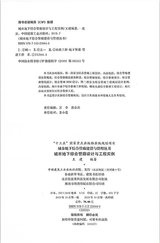 城市地下综合管廊设计与工程实例 王建 编著 社 现货 中国建筑工业出版 城市地下综合管廊建设与管理丛书 正版