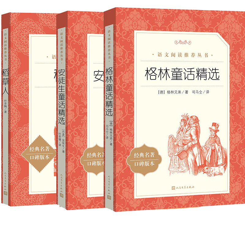 阅读书目套装 人民文学出版 共三册安徒生童话精选格林童话精选稻草人 阅读丛书 社 语文推荐 三年级上推荐