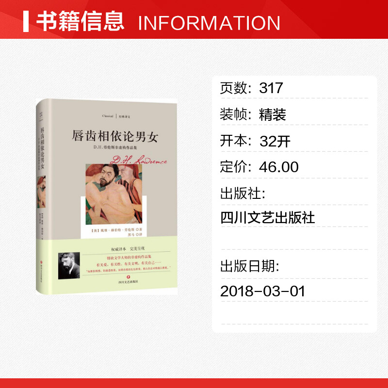 译 英 Lawrence 唇齿相依论男女 著作 新华书店正版 David 当代文学文学 戴维·赫伯特·劳伦斯 图书籍 Herbert 现代 著;黑马