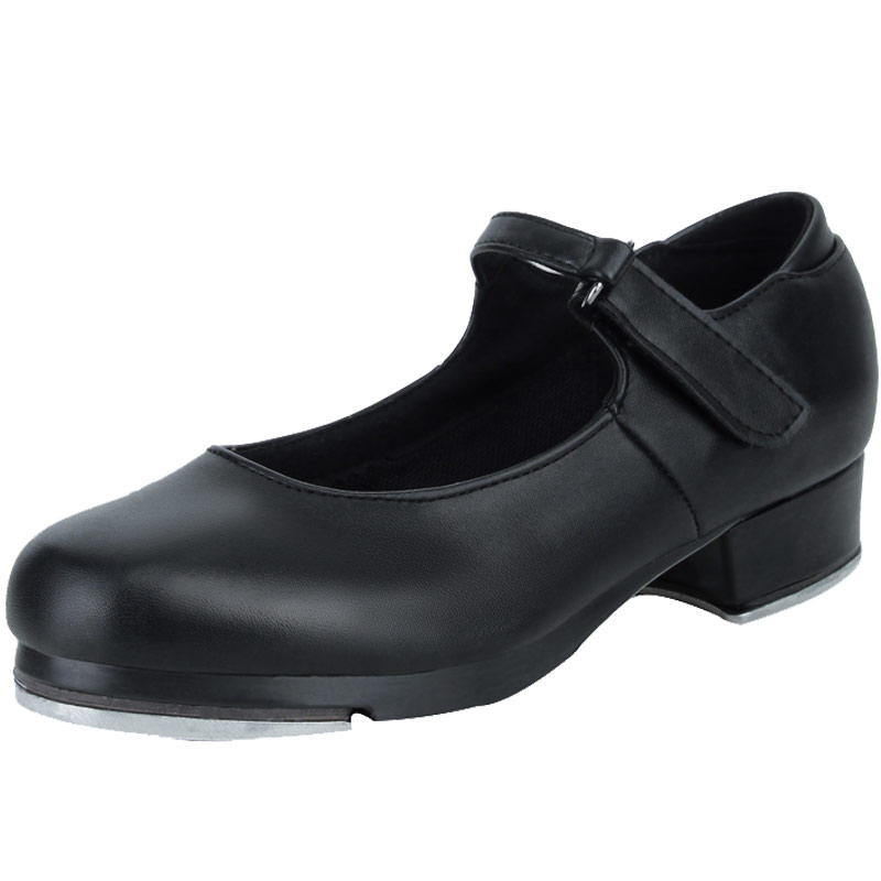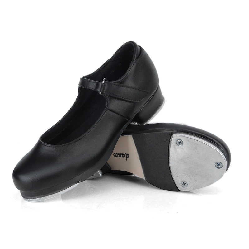 儿童女童踢踏舞鞋 女孩女生专业黑色魔术扣仿皮真皮牛皮踢他舞鞋