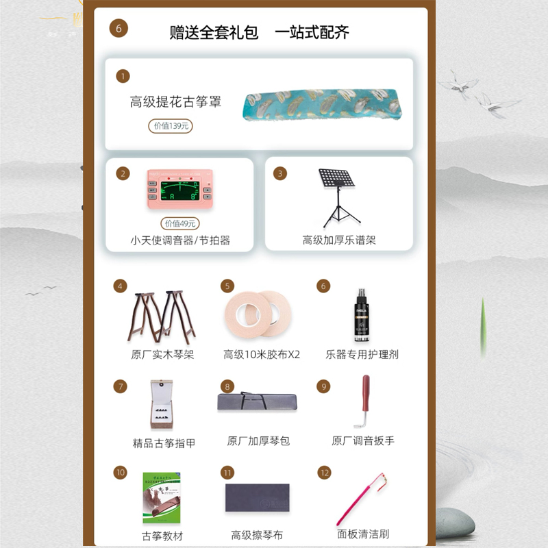 幽韵古筝水墨丹青演奏古筝初学专业古筝3D漆画工艺新爱琴古筝