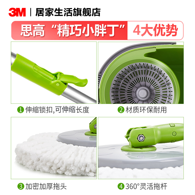 3M思高旋转拖把旋转甩干免手洗家用一拖净拖地桶地拖自动脱水桶杆