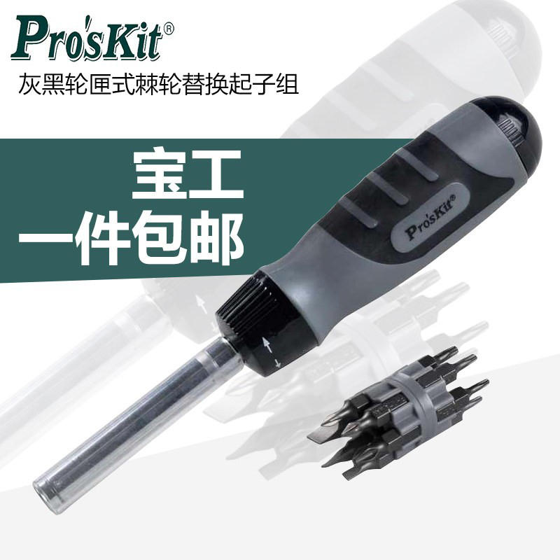 螺丝刀8PK 螺丝批组套 SD010 棘轮替换起子组 宝工12合1灰黑轮匣式