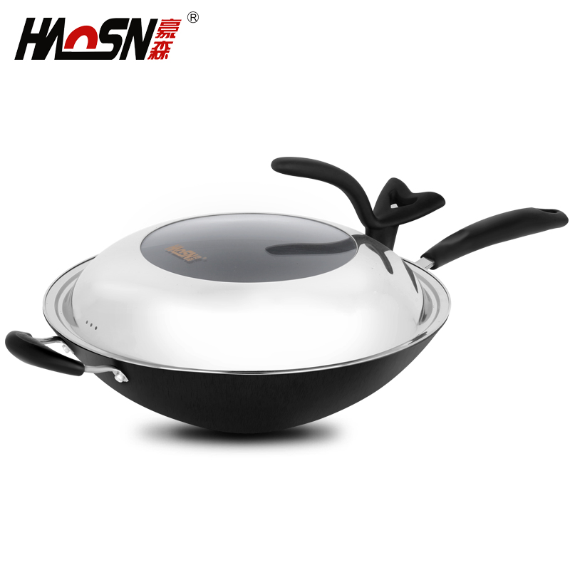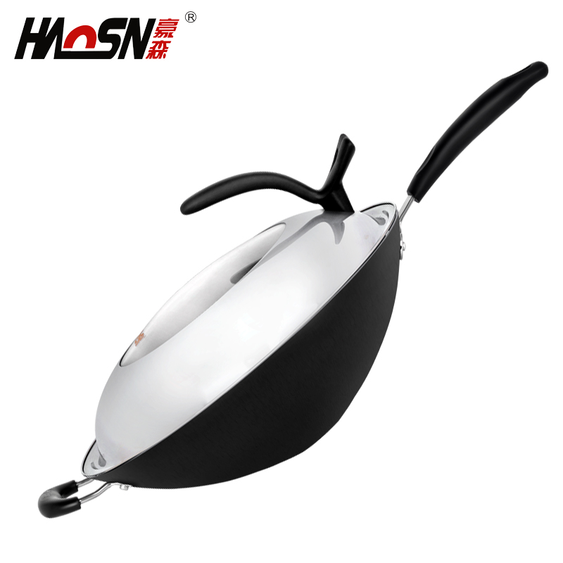 豪森炒锅不粘锅尖底生铁铸铁锅无涂层锅具无烟锅不锈手工铁锅34cm