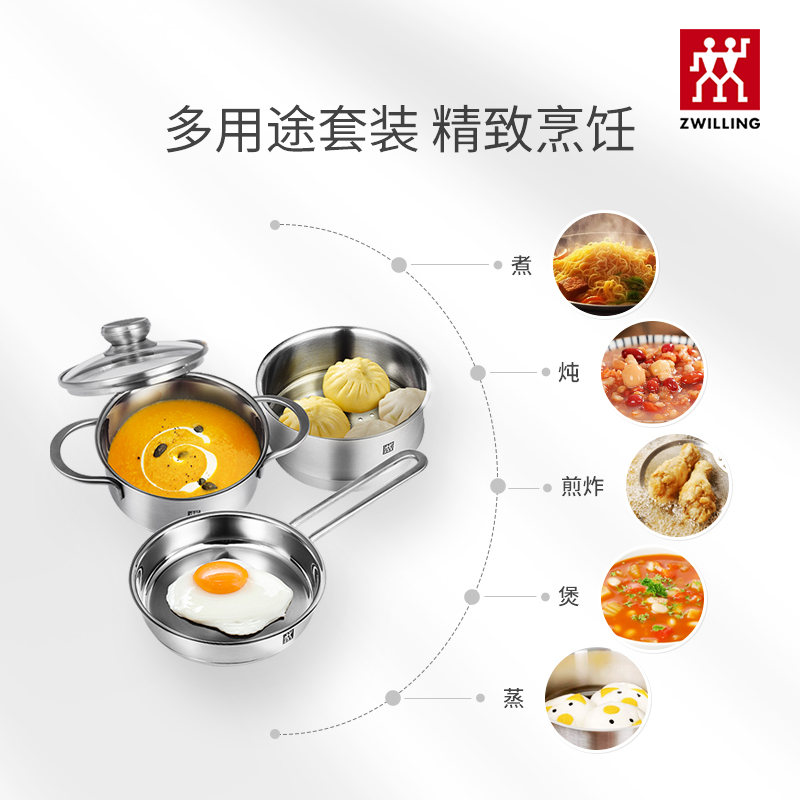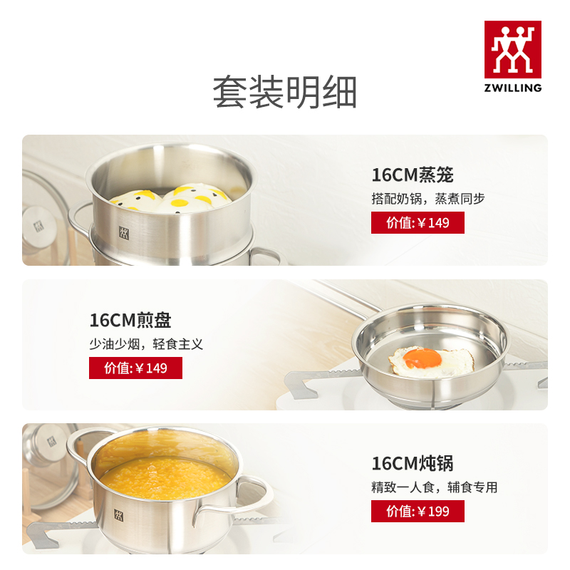德国双立人锅组套装 一人食奶锅蒸笼平底锅 Nova16cm不锈钢辅食套装