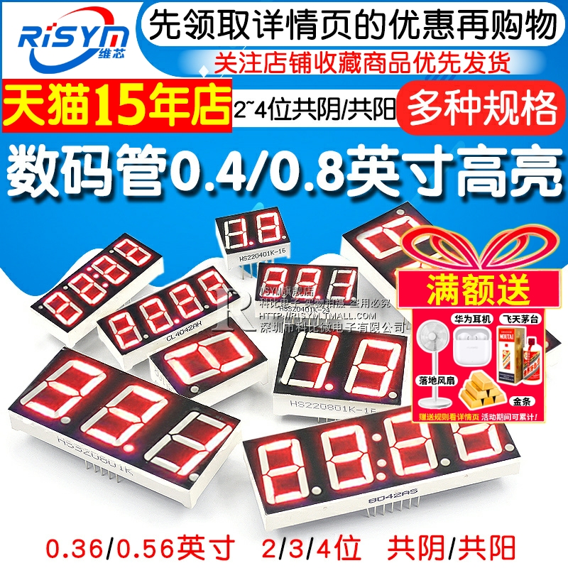 4位共阴 数码 0.4英寸0.8英寸2 共阳红色数字显示管时钟 管0.28