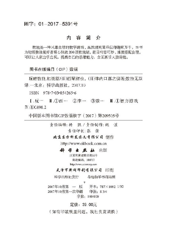 科学出版 正版 数独无双译 玩转数独初级篇 社 现货