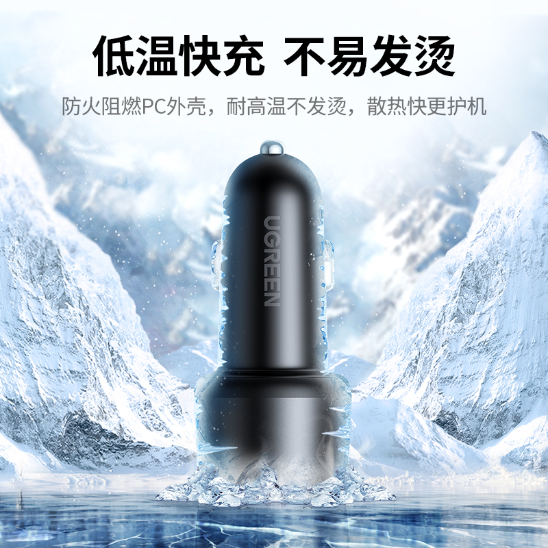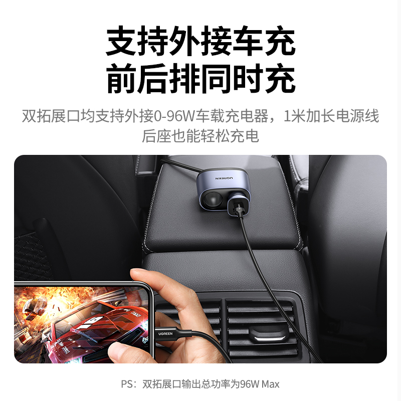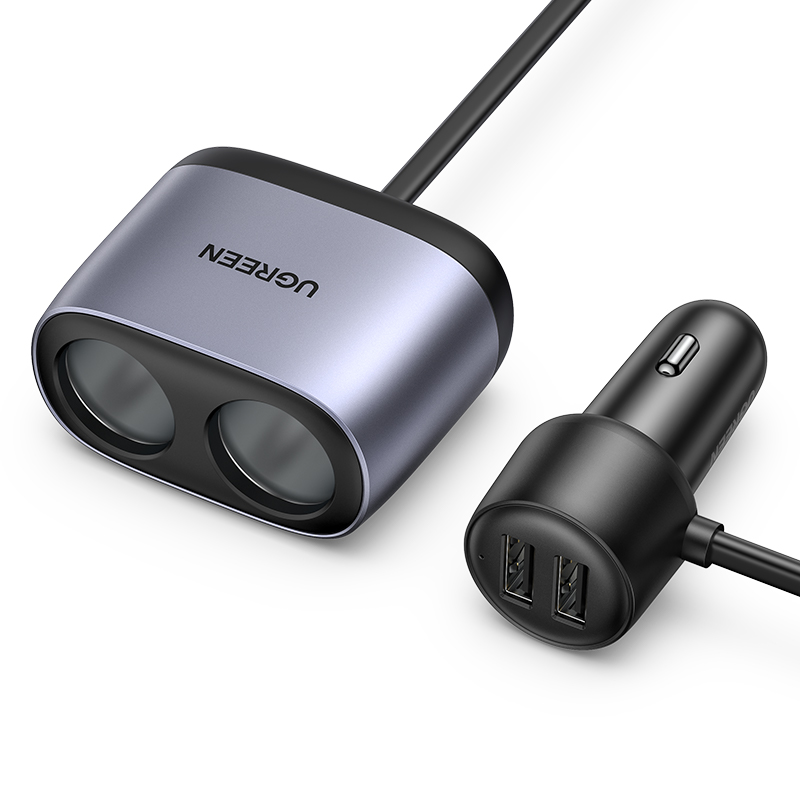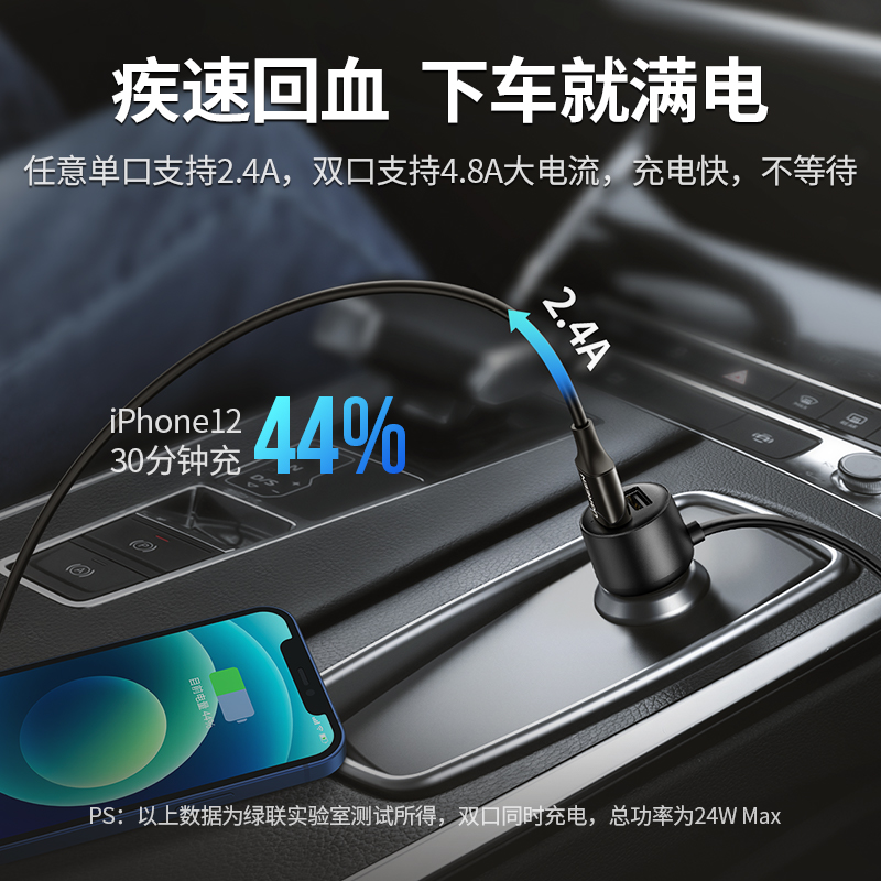绿联车载充电器快充一拖二多功能车充电器车用汽车USB点烟器插头